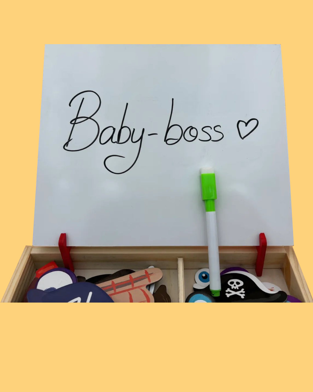 (accessoires, yeux, bouches, chapeaux, etc.), 1 feutre effaçable (pour dessiner sur le tableau blanc).
